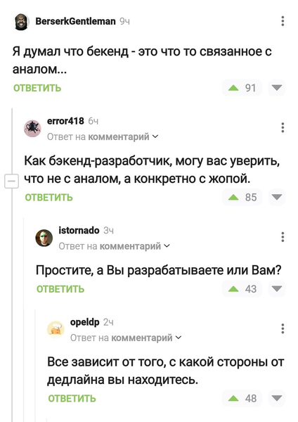 — А если мне своё мужское достоинство освятить, то получается, что ребёнок сразу святой родится?
