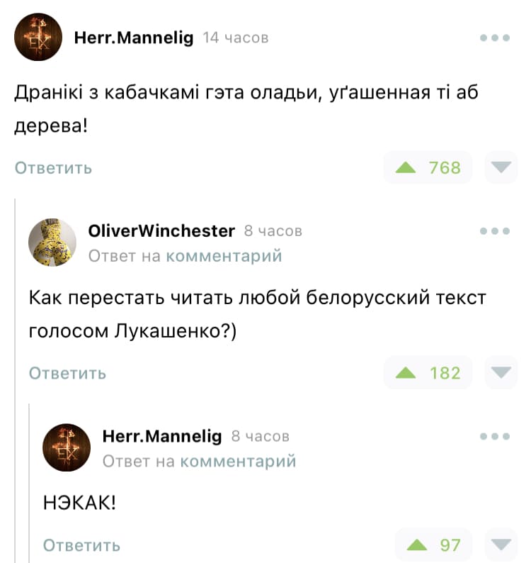 — Мне в последнее время, реально интересно стало, настанет ли когда-нибудь такое время, когда белорусы перестанут с удивлением рассматривать белорусов, которые общаются на белорусском языке в общественном месте?