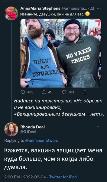 — Потому что ты идёшь на свидание с цветами и конфетами, а я с презервативами и зубной щёткой!