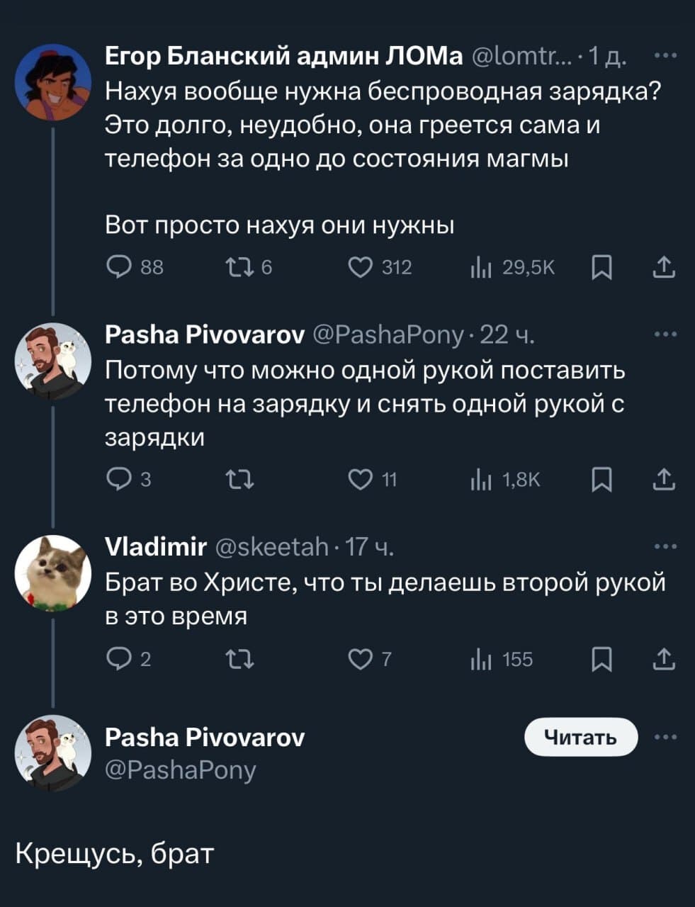 Xiaomi сделали зарядку которая заряжает за 20 минут, а Apple сделали зарядку которая заряжает за 20$.