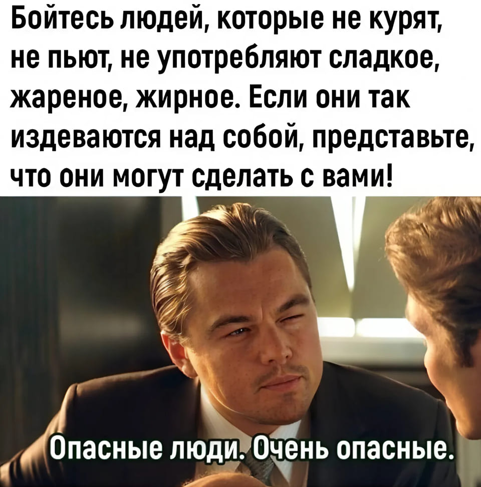 — Убийство людей не вредит здоровью в отличие от курения и спиртного.