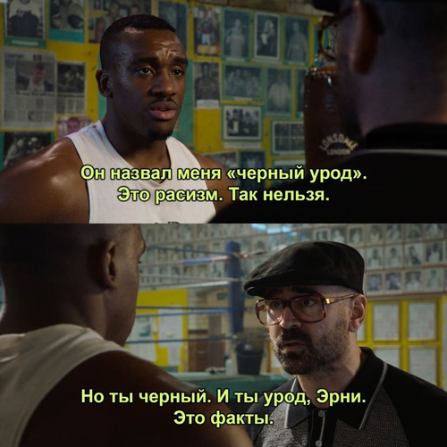 – Я не понимаю, объясни мне, пожалуйста... Когда я родился, я был чёрным, вырос тоже чёрным, когда я загораю, я чёрный, и когда холодно – тоже чёрный. Когда я болею, я чёрный, и когда умру, тоже буду чёрным. А вы, белые... Вот ты, когда родился, был розовым, когда ты загораешь – ты коричневый, когда тебе жарко – ты красный, а когда холодно – синий, когда ты болеешь, ты зелёный, а когда умрёшь, ты будешь серым... и после всего этого вы имеете наглость называть нас цветными?!