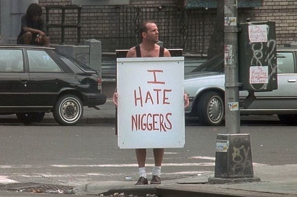 Учитывая тот факт, что сцену в Гарлеме снимали, как ни удивительно, в Гарлеме, то да, озаботились о сохранности ГГ) Древний факт. С надписью "Я ненавижу ниггеров", вряд ли бы Брюс прожил там больше минут 5-7, да и съёмочная группа бы огребла по самое не могу. =)