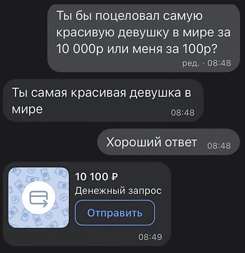 - Мне от тебя какой-то спам идёт и просят деньги на карту сбера перевести.