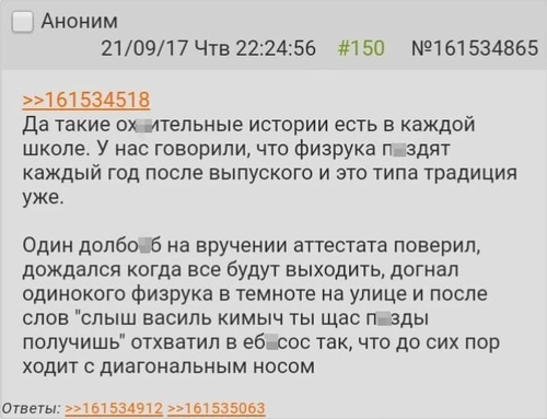 Весь класс пребывает в полном недоумении от происходящего, и кто-то шёпотом говорит с последних парт: