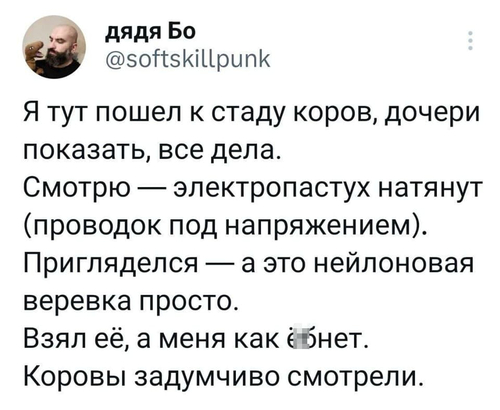 Человек может познать мудрость тремя путями: читать мудрые книги, учиться у мудрых людей или пописать на оголённый провод под напряжением.