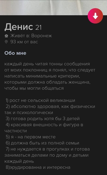 Уважаемые соискатели! Имейте в виду, что на сайтах знакомств фотографии так же близки к оригиналу, как авто со скрученным пробегом к своему реальному состоянию.