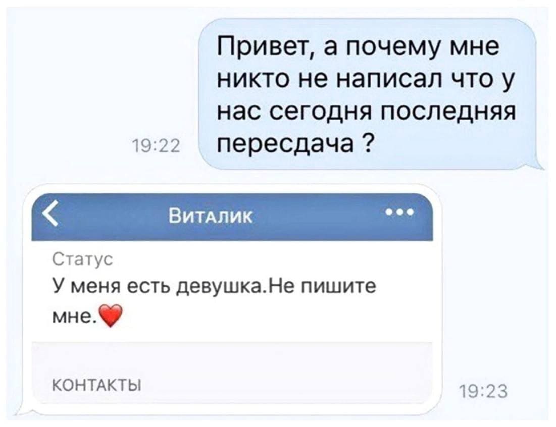 — Мой бывший не стал платить 300 рублей за такси для меня. Парень, с которым я познакомилась, заплатил 5 000 рублей за билет на самолёт, чтобы увидеться со мной на 3 дня. Мораль этой истории... знай себе цену. И ты обязательно получишь то, что заслуживаешь.