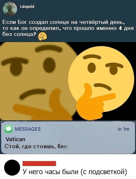 Через 10 минут Иисус, смеясь до слёз, приходит назад.