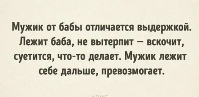 — Если мужчина с уверенностью заявляет вам о том, что он в доме хозяин, то это может означать только одно, что он явно не женат...