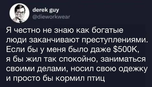 — Все адвокаты отказываются вести моё дело, как только узнают, что я действительно не крал эти десять миллионов долларов.