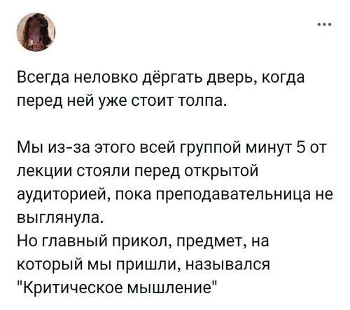 — Не сразу понял, что дверь должна открываться в сторону кота, думал надо себе по морде фигачить и только тогда дойдёт эта сложная кошачья логика.
