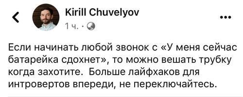 При входящих вызовах сразу сообщайте собеседнику, что у вас садится аккумулятор. Позволяет услышать только важное, не раз выручало.