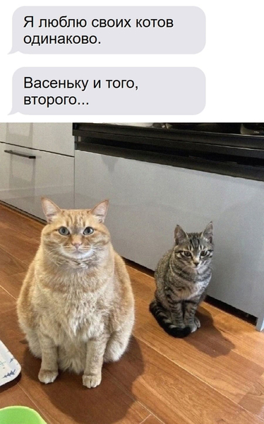 Всегда стараюсь вставать на весы вместе с котом. Независимо от итогового результата взвешивания, кот — «прожорливая скотина», а я «молодец!»