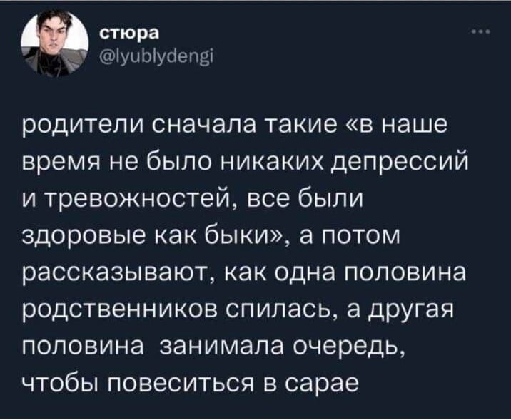 — Вешаться он собрался, тряпка! ...Будь мужиком, блеать, подотри сопли и действуй!
