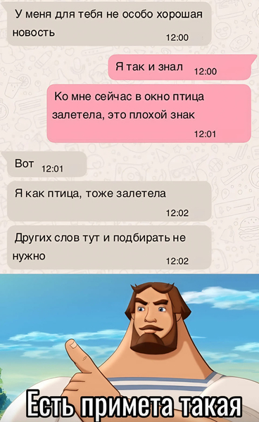 — Недавно познакомился с одной девушкой и вчера мы гуляли с ней по городу. Идём по вечернему скверу, как вдруг, нам дорогу перебежал огромный чёрный кот. И она тут же начала говорить мне о том, что это очень нехороший знак...