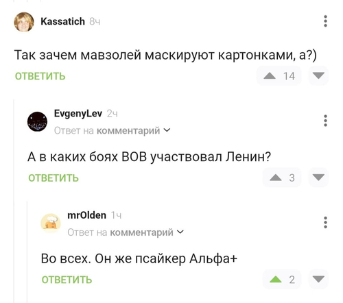 — Ты что, ненормальная? Он же в мавзолее лежит.