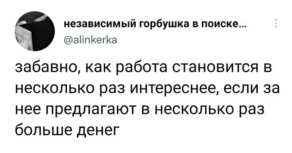 — Мне у вас абсолютно всё нравится, кроме зарплаты..