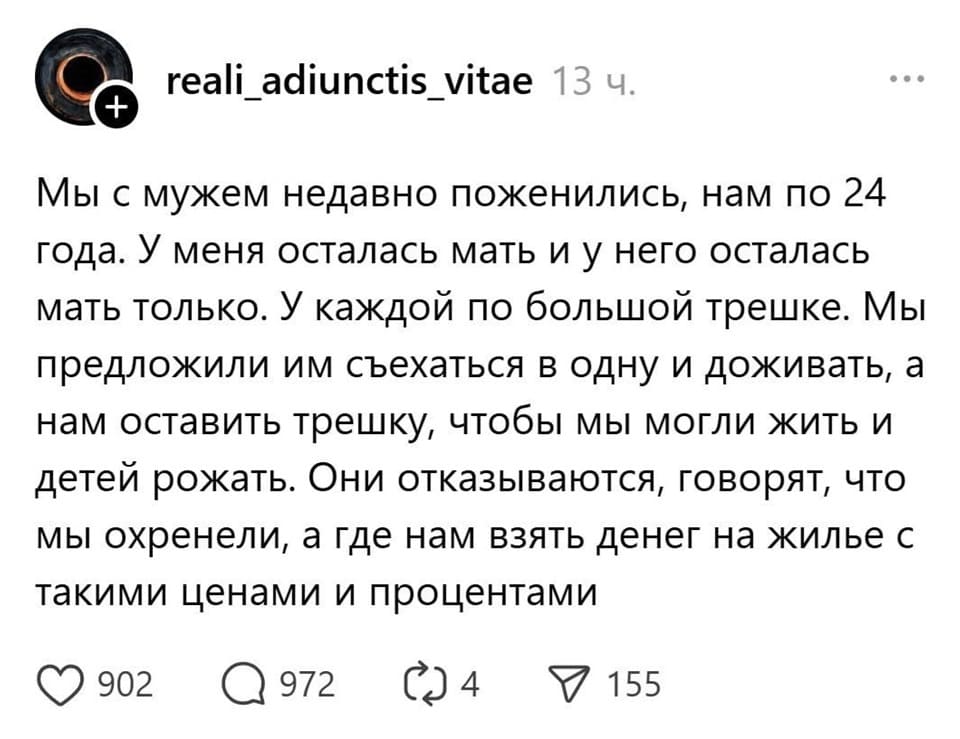 Чтобы жениться на ней после продажи и жить в её квартире...