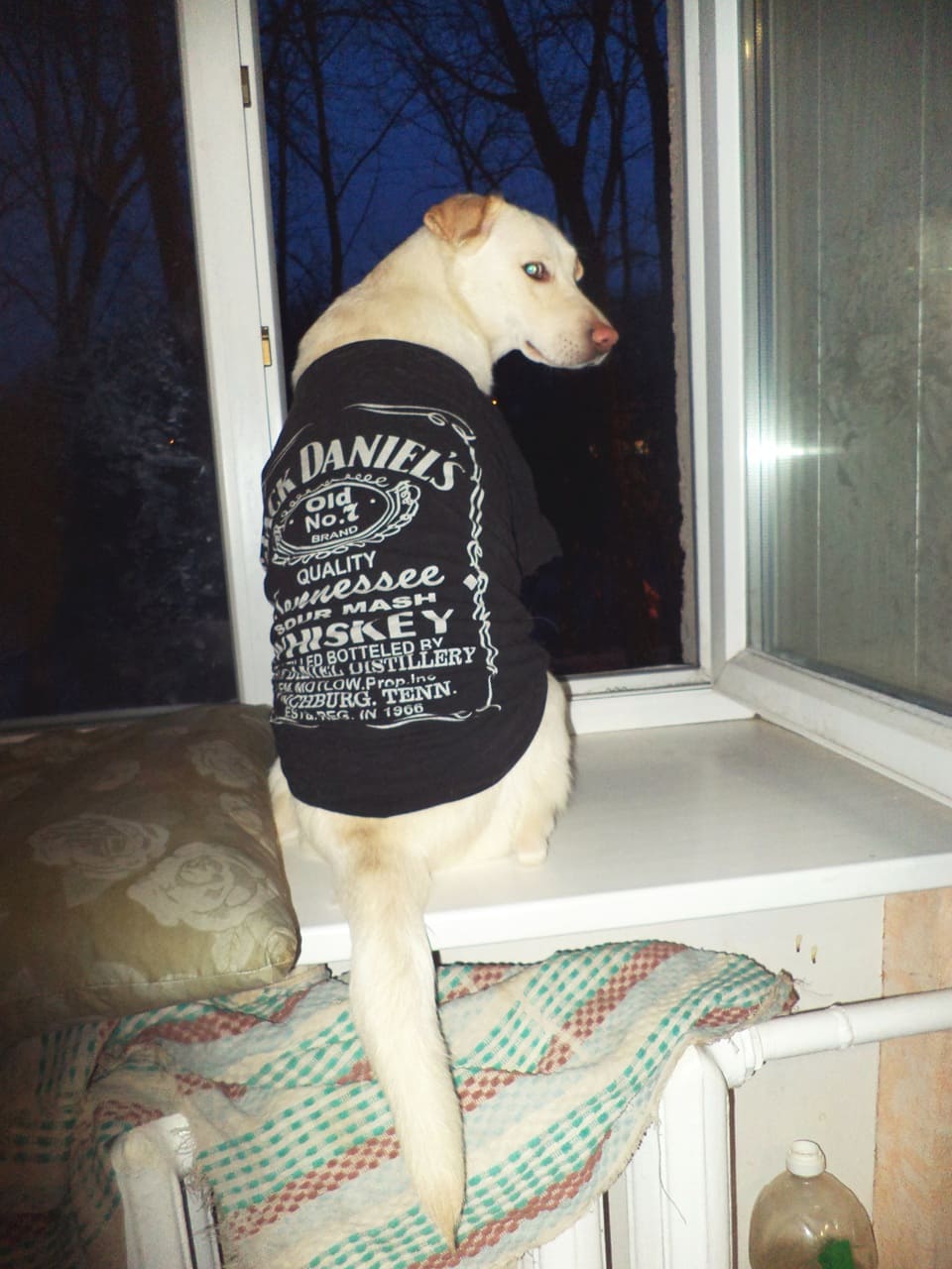— Щас всё исправим, – говорит муж, идёт на балкон, вытаскивает бутыль с бензином, мочит в нем салфетку, а салфеткой проводит под хвостом собаки.