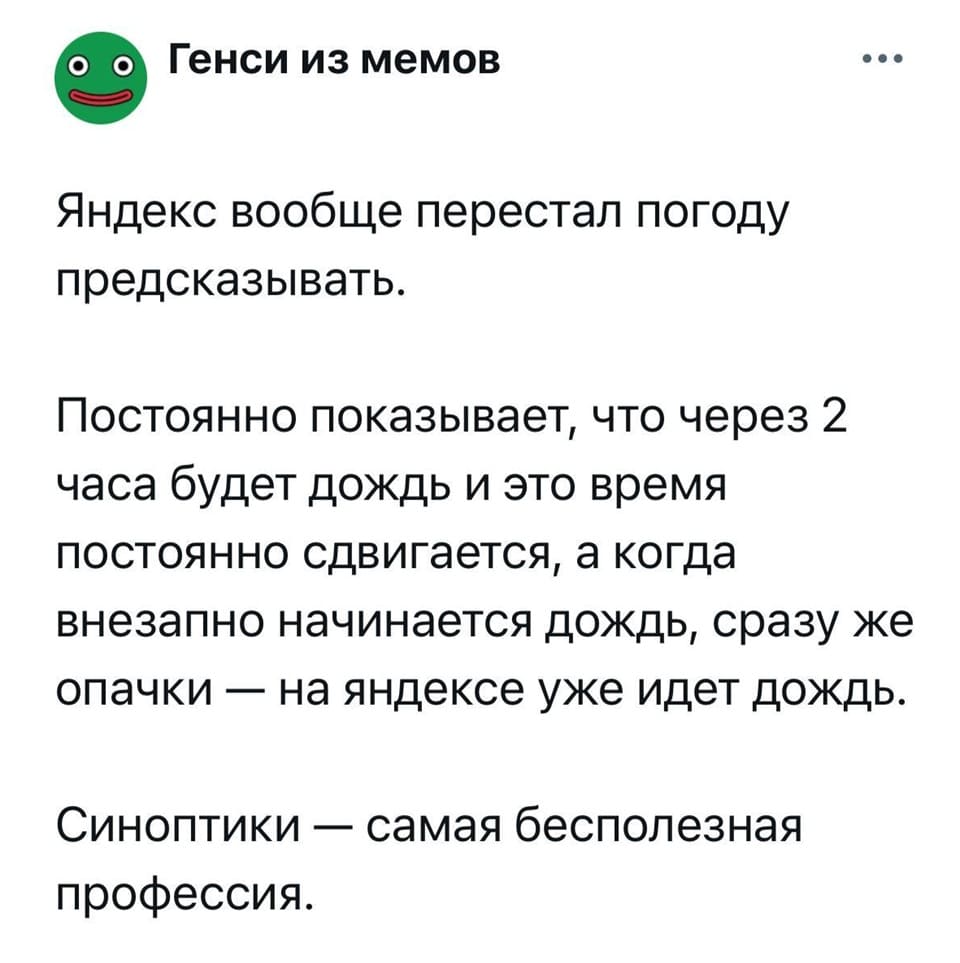 По сведениям Гидрометцентра из достоверных источников, прогноз погоды на вашу бессмысленную жизнь: