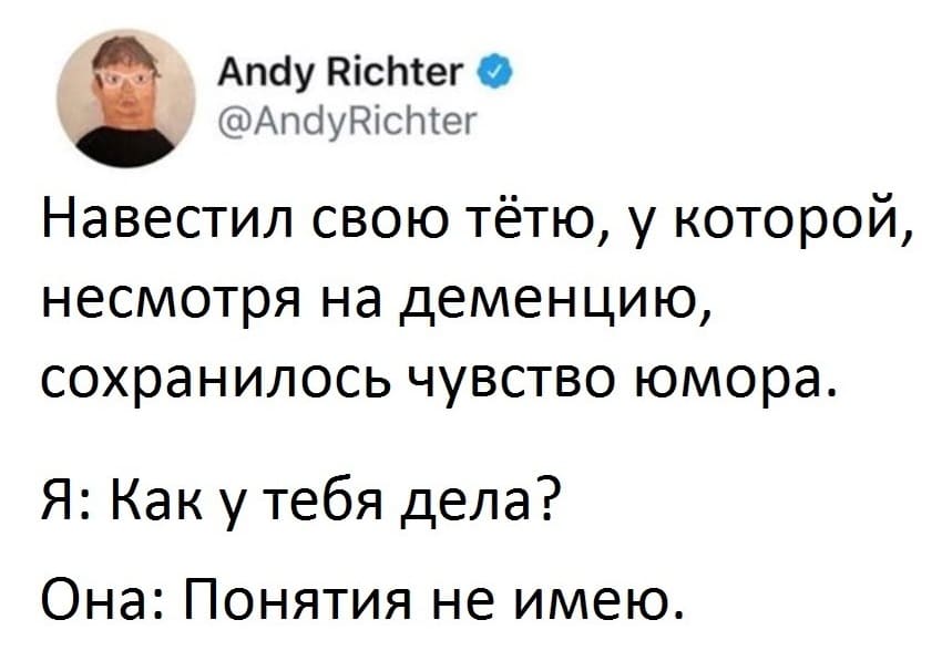 Сегодня рядом со мной упала одна бедная старушка. Я понял, что она бедная, потому что в ее кошельке было всего 100 рублей.