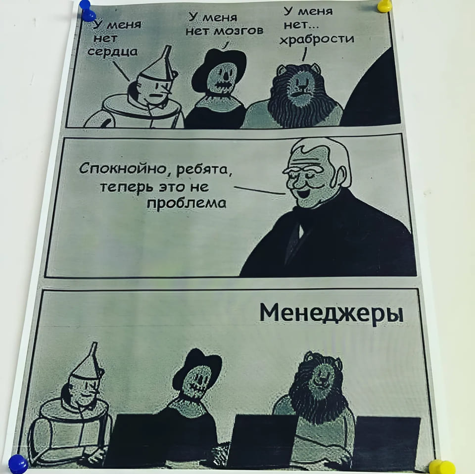 — Слушай, два месяца мы ели менеджеров, пиарщиков, рекламщиков, маркетологов, бухгалтеров — никто ничего не замечал. Зачем ты сожрал уборщицу?