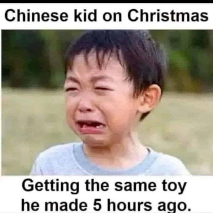 Дорогой Санта, почему на каждой моей игрушке написано, что она сделана в Китае? Что ж, видимо даже ты не способен воздержаться от соблазна экономии на дешёвой рабочей силе. Хрю хрю, капиталистическая ты свинья.