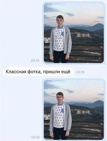 Договорились. Если всё в порядке, вышлют фотографию, где все стоят. Если плохо, то фотографию, где все сидят.