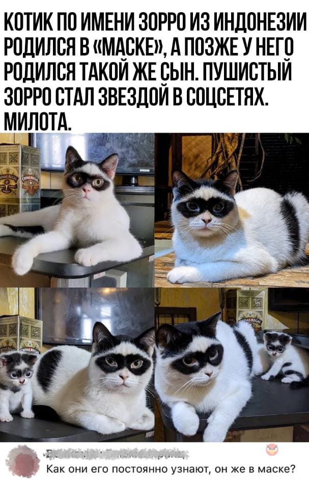 КОТИК ПО ИМЕНИ ЗОРРО ИЗ ИНДОНЕЗИИ РОДИЛСЯ В «МАСКЕ», А ПОЗЖЕ У НЕГО РОДИЛСЯ ТАКОЙ ЖЕ СЫН. ПУШИСТЫЙ СТАЛ ЗВЕЗДОЙ В СОЦСЕТЯХ.