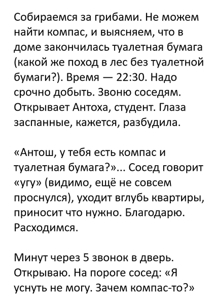 Вот молодец Серёга, мало сейчас таких, но есть одно но... к родителям он зашёл в два часа ночи! И объяснил это тем, что хотел точно их дома застать.