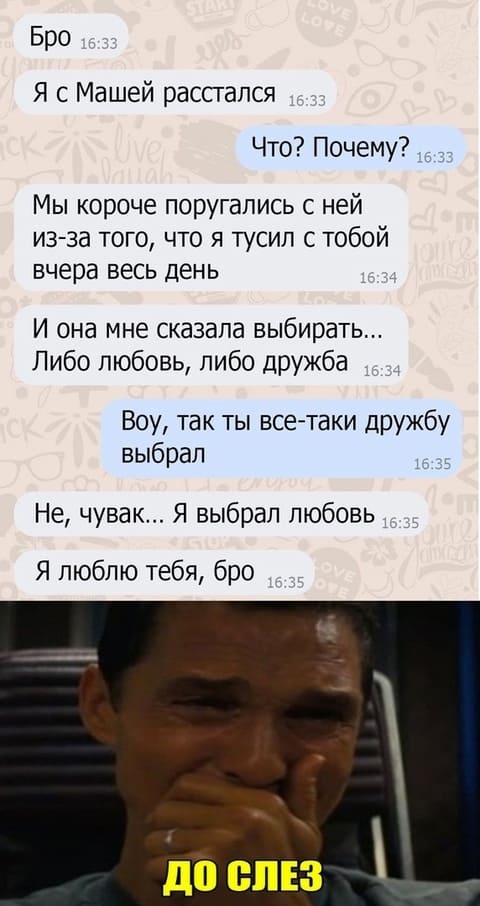 «Моя жена сбежала от меня с моим лучшим другом, как же сильно я по нему скучаю...»
