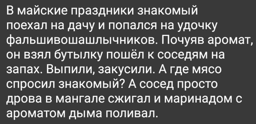 — Света, нет. Это будет оскорблять чувства веганов. И тех у кого нет шашлыков.