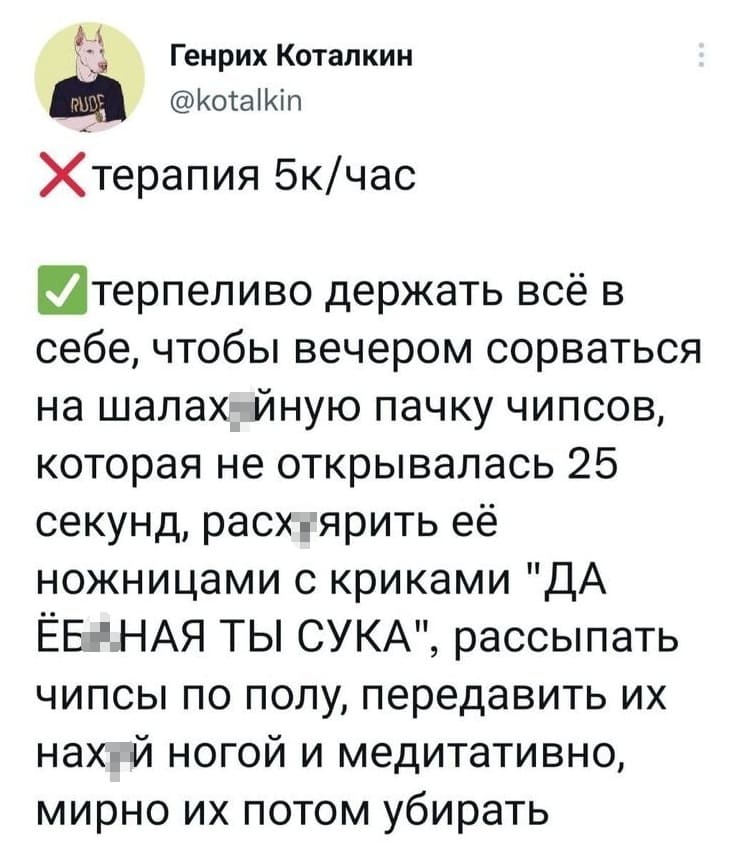 Некоторые люди ходят на психотерапию, чтобы справляться с теми людьми, которые не ходят на психотерапию.
