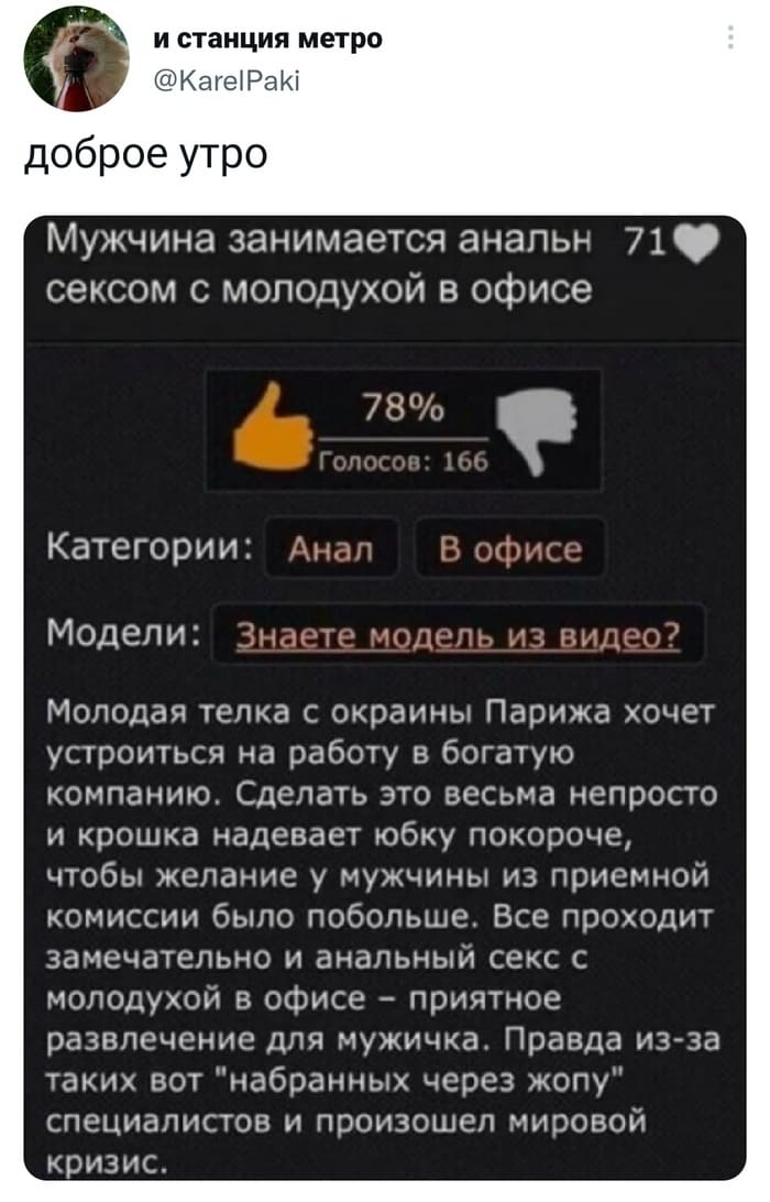 Свидание это буквально собеседование на ceкс, где все скрывают предыдущий опыт работы, а некоторые даже не уволились.