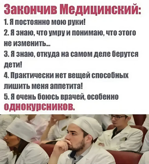 — У меня сегодня пар вообще не было. Причина: в больнице трупов нет. Некого вскрывать...