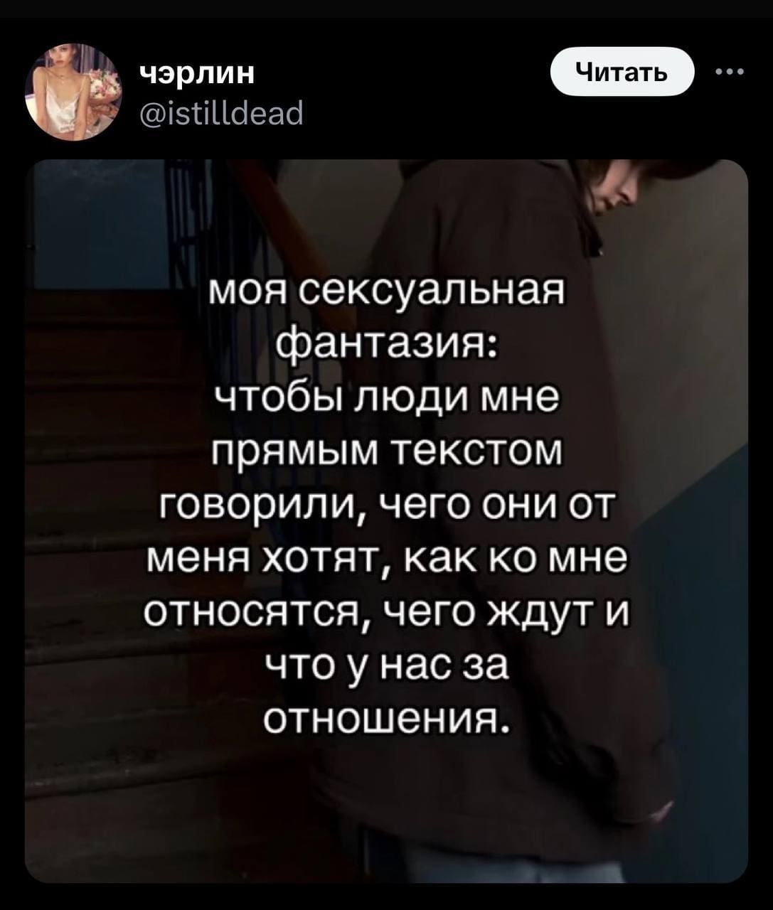— Парни, хотите прикол? Возможно вы сейчас сильно удивитесь, но оказывается, для того, чтобы девушка была счастливой, податливой и милой, нужно просто быть РЯДОМ с ней. И всё! Она будет самым милым ангелочком!