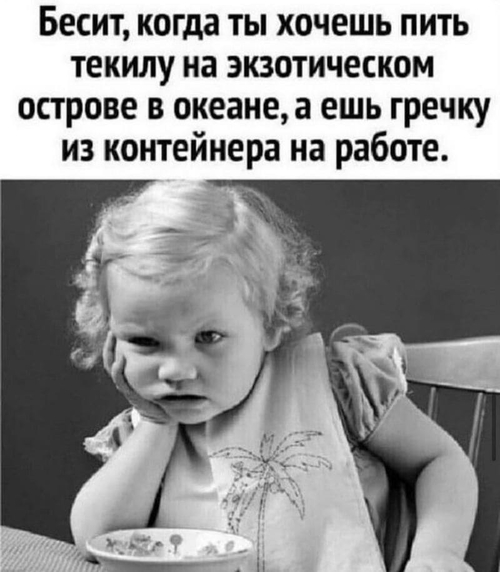 Бесит, когда ты хочешь пить текилу на экзотическом острове в океане, а ешь гречку из контейнера на работе.