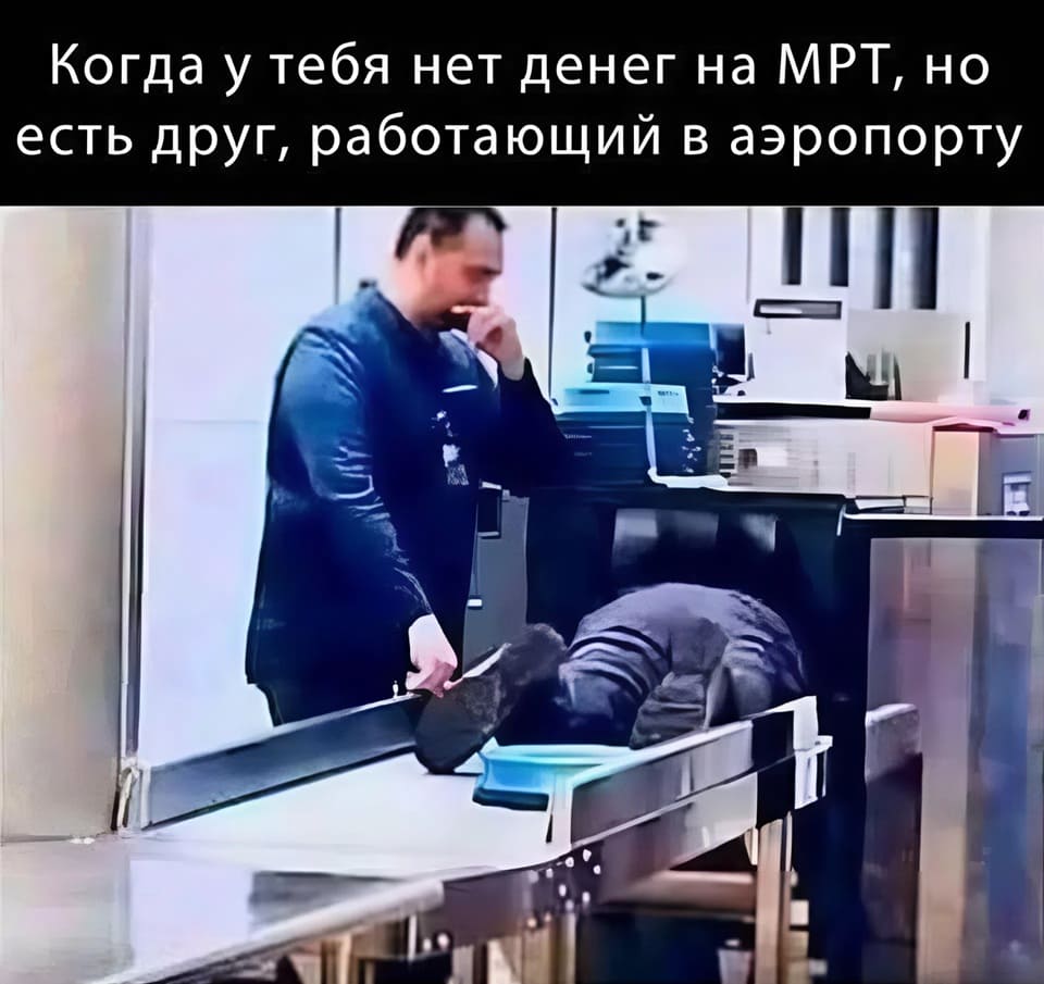 Стоят пассажиры в аэропорту, посадочный досмотр проходят. Дошла очередь до мужика с чемоданом.