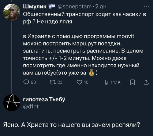 — Фима! Ты, конечно, идеальный маркетолог, но ты идиот! Как можно было изображать Иисуса Христа на рекламе? Мало нас, евреев, били, погромы устраивали? Немедленно снять!!!