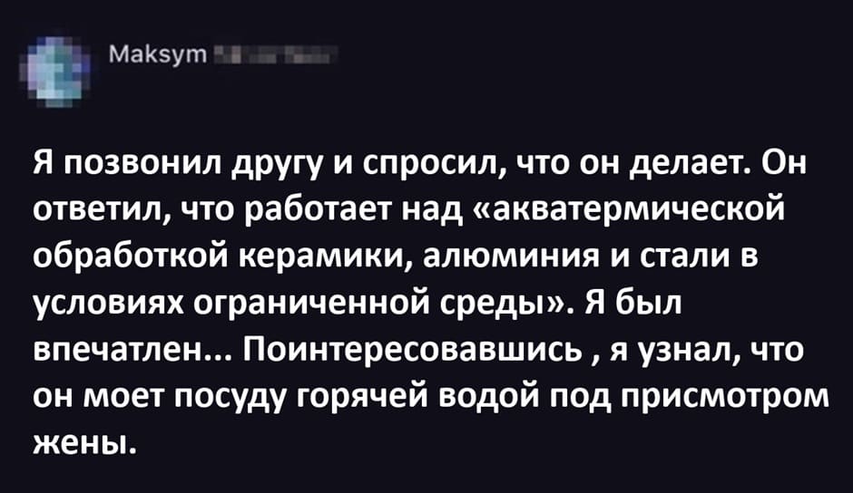— Да вот буквально вчера выхожу я ночью поссать в раковину, а там – гора немытой посуды!..