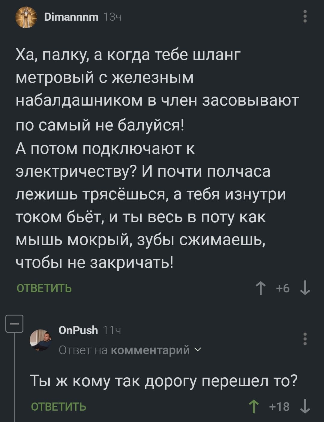 — Ну, подождите, дайте договорить – мне именно к вам нужно! Мы моемся в бане, потом выпиваем и играем в настольную игру – все садятся вокруг журнального столика и выкладывают на него члены. Далее ведущий берёт большую чугунную сковородку, говорит: «Хоп!» и с размаху бьёт ей об стол. За это время нужно успеть убрать...