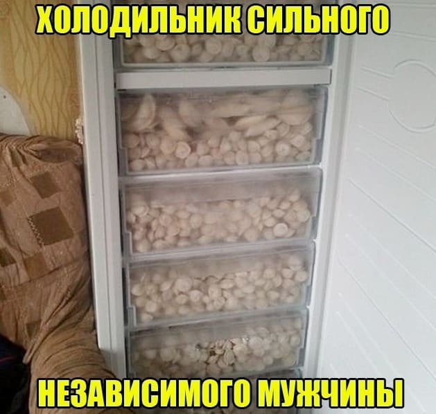 Открываю дверцу холодильника и смотрю вовнутрь – чего там только нет! Икра красная, чёрная, сыр пармезан, форель, стерлядь, уйма мясных деликатесов, экзотические фрукты, дорогой коньяк пятидесятилетней выдержки, бутылка дорогущего французского красного вина, пиво немецкое… На моём лице светится елескрываемая довольная улыбка: «Эх, жизнь прекрасна!» - подумал я… После чего вспомнил, что я - мастер по ремонту холодильников и пришёл сюда заправлять фреон.