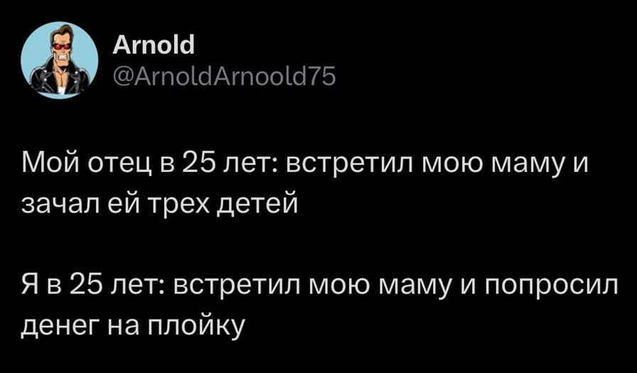 Начал плавно переходить от возраста "в мои годы батя уже женился" к возрасту "в мои годы батя уже из семьи ушёл".