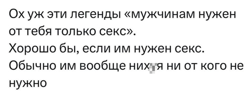 — Сeкс – это как ужин в еврейской семье: сам не попросишь – никто не даст.