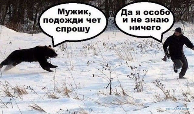 — А вот кстати, я тут недавно задумался на такую тему, что делать если ты находишься на самой верхушке дерева и к тебе лезет медведь?
