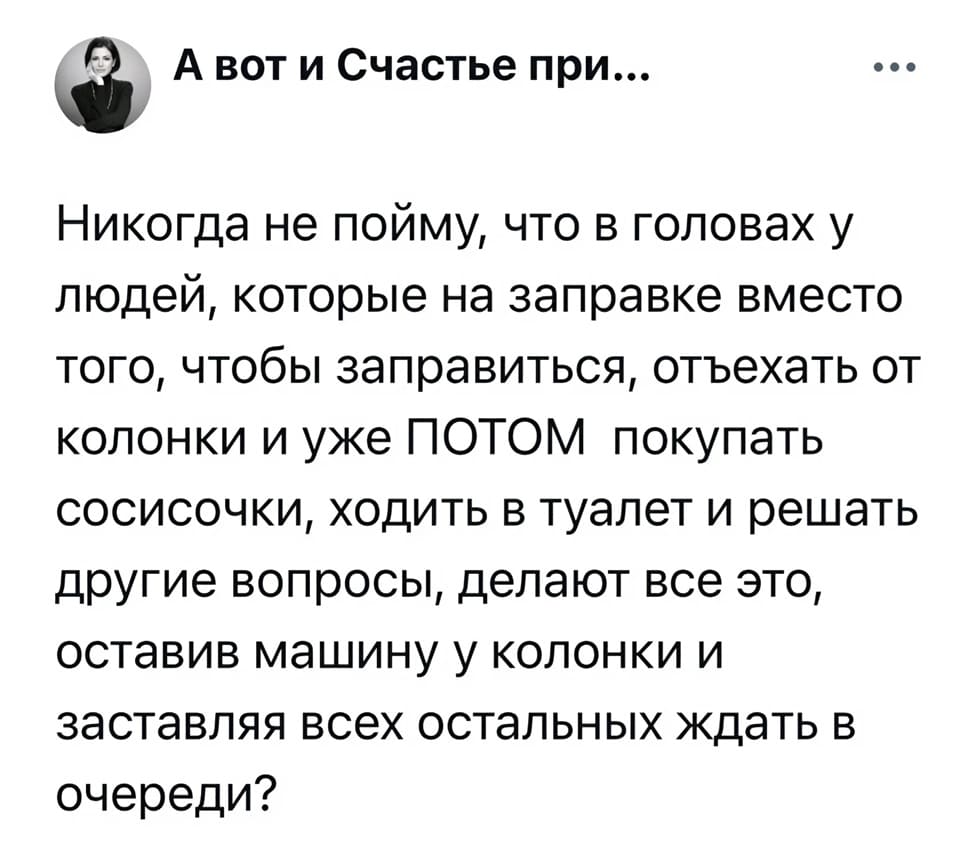 Только мужчины после заправки на АЗС трясут пистолет в баке.