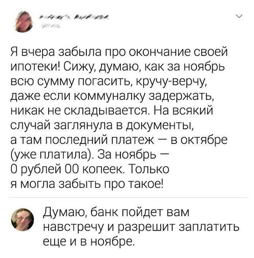 — А моя оформленная ипотека на 6 млн. и 25 лет тоже в вашем банке, так что вы подумайте ещё..