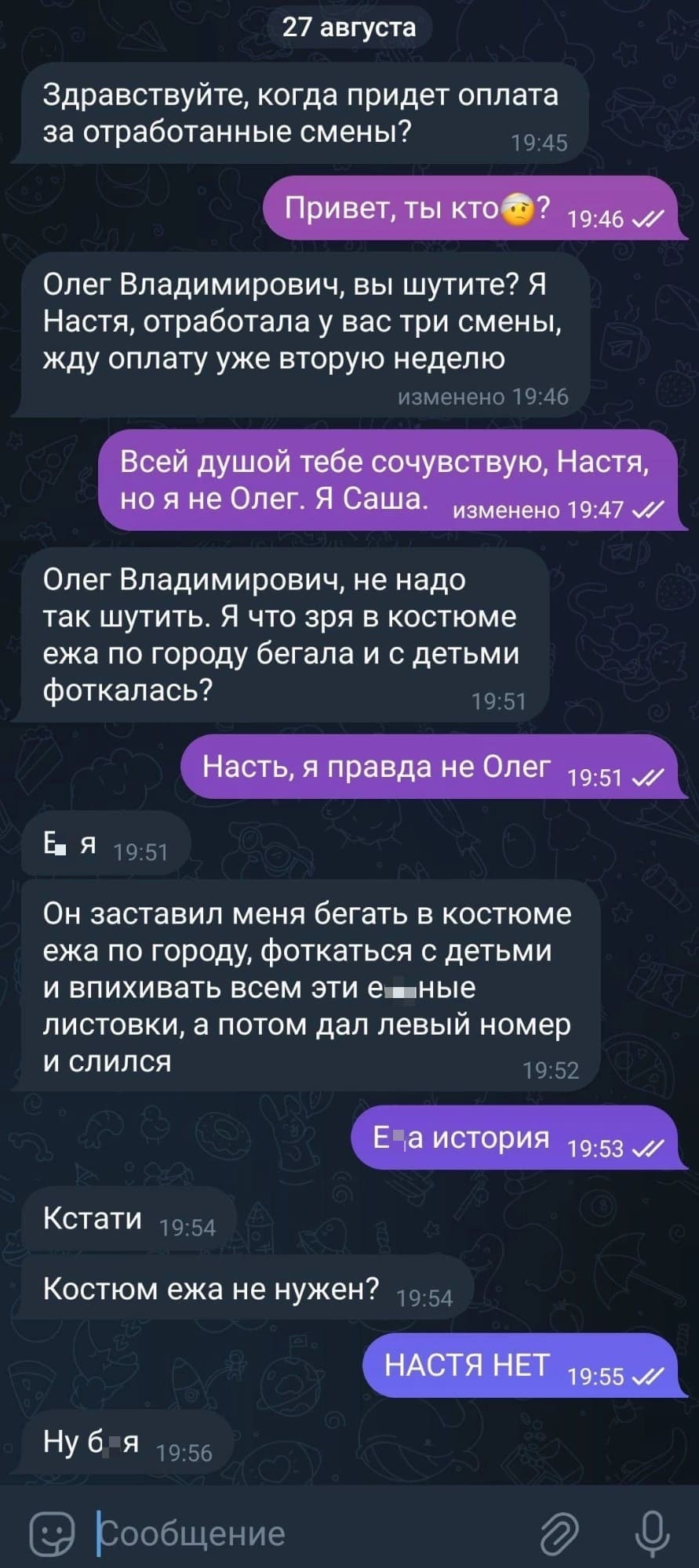 — Эх, а у меня с собой только 100 рублей. Слушай, а давай я дам тебе 100 рублей и свой телефон?