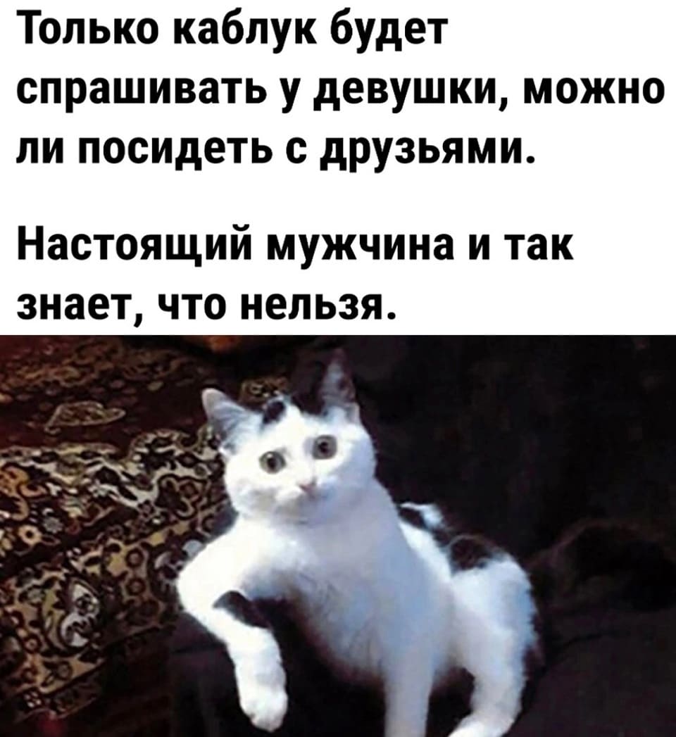 Только каблук будет спрашивать у жены, можно ли посидеть с друзьями. Настоящий мужчина и так знает, что нельзя.